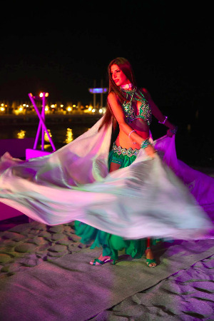But moved by a mix of passion and curiosity, Graciela also continued to attend Belly Dancing classes, learning from teachers all over the world, including a month in Lebanon where she trained before starting to travel the world. Today Graciela is based in the travel hub of Dubai where she has a very busy career as both a Model and a Belly Dancer.
